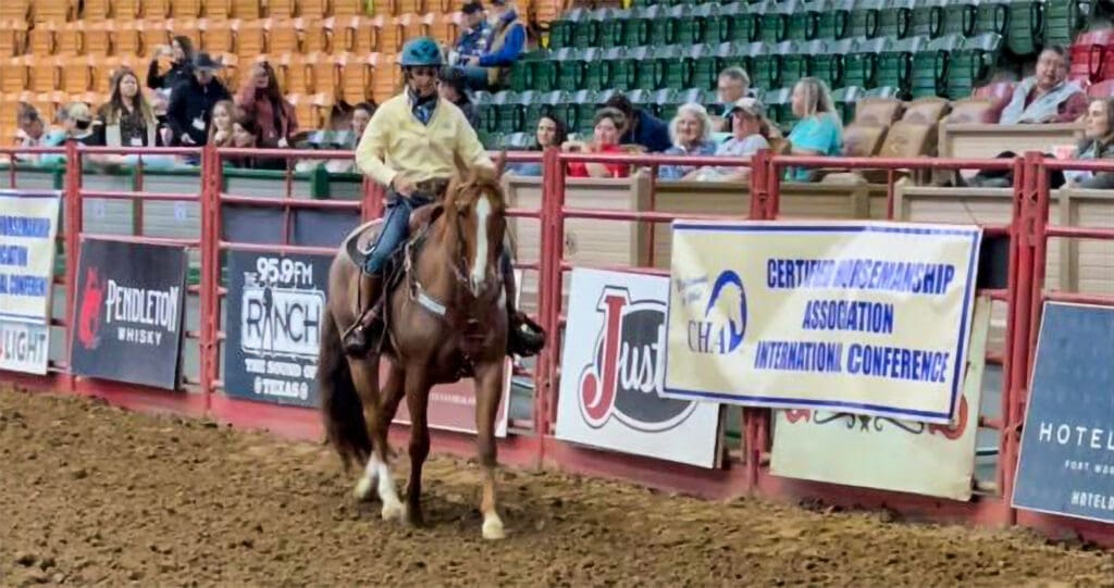 Because what I love most is training young horses, and because Pepper has matured into a big and talented horse, I am ready to start over with a younger and smaller horse. Nancy and Pepper are the perfect match for each other, and I know they will go on to do great things together. Our longstanding agreement is that he is not her horse, but “our” horse. I know that she will share him with me whenever I am doing clinics or events near her. So that’s how I ended up riding Pepper during my presentations at the CHA International Conference this month, where he performed like a champion in the Fort Worth Cowtown Coliseum, and made his other-mother proud.