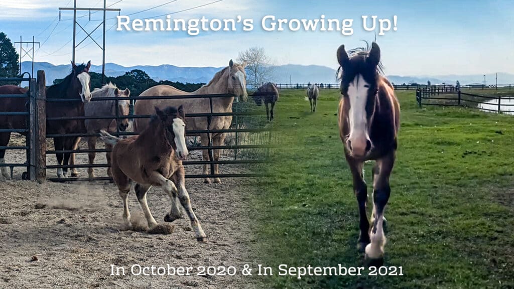 Remi’s mother is a Clydesdale mare named Joy, purchased in the spring of 2020 as a trail horse, and unbeknownst to the ranch, was pregnant. Remi was born on October 1, 2020, an unexpected but happy surprise at the renowned guest ranch.
