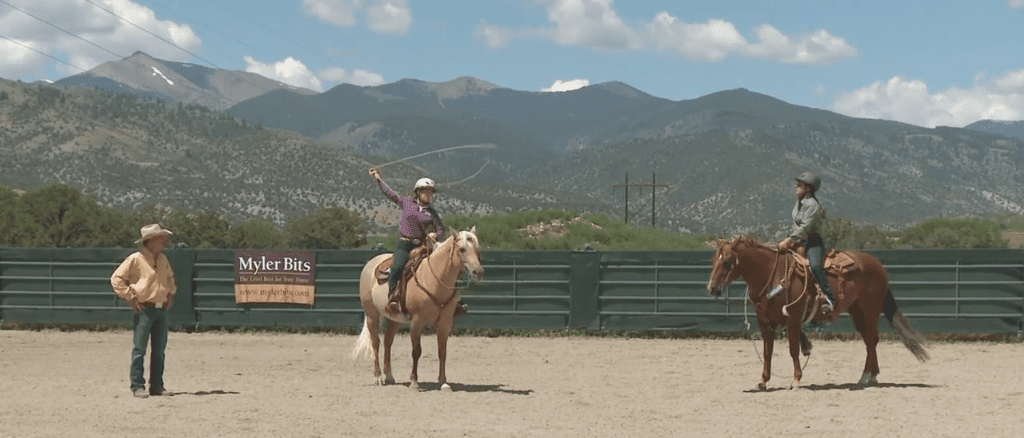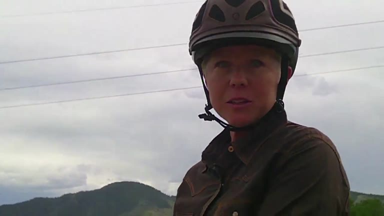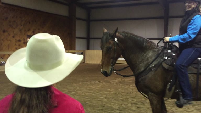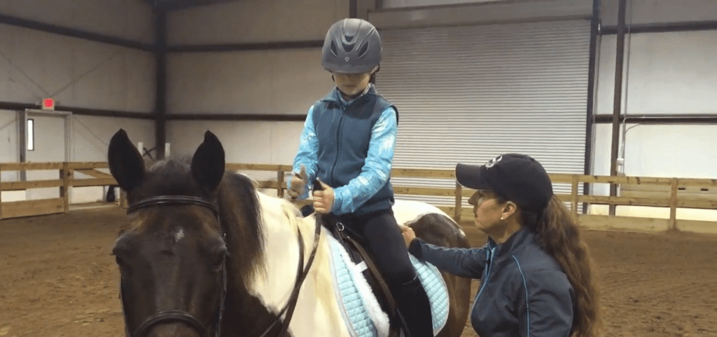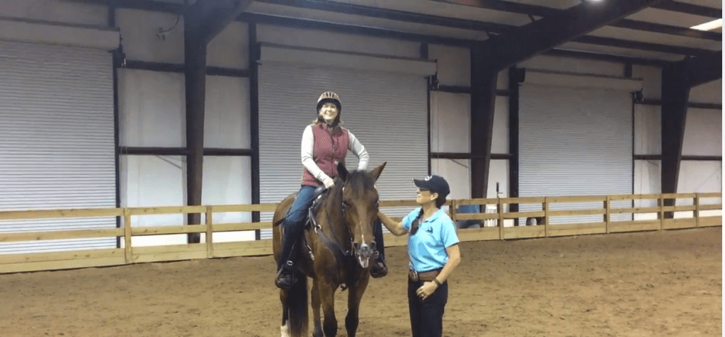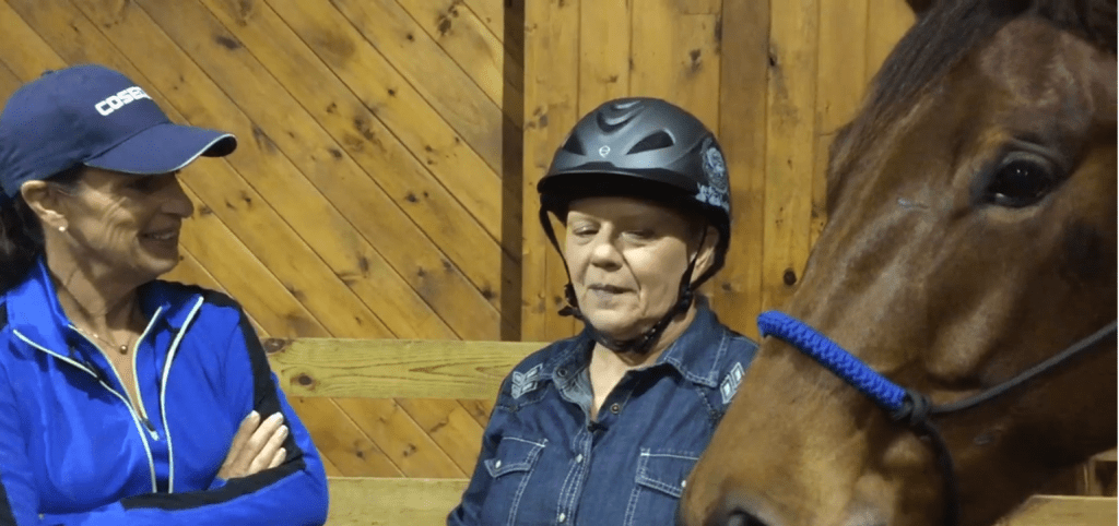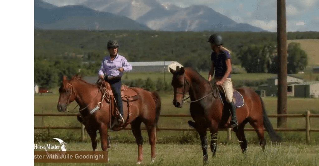 Julie talks with Joanne about how she should use rein to control Roscoe’s speed.
