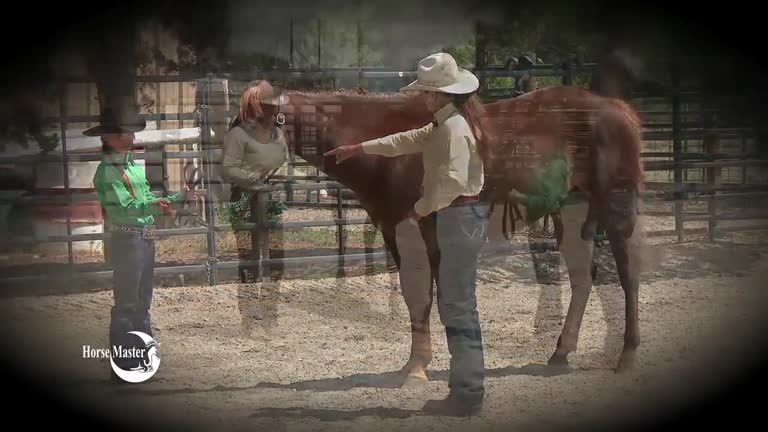 Julie Goodnight and Veterinarian Deb Schultz work with a horse whose pain was keeping him from performing.