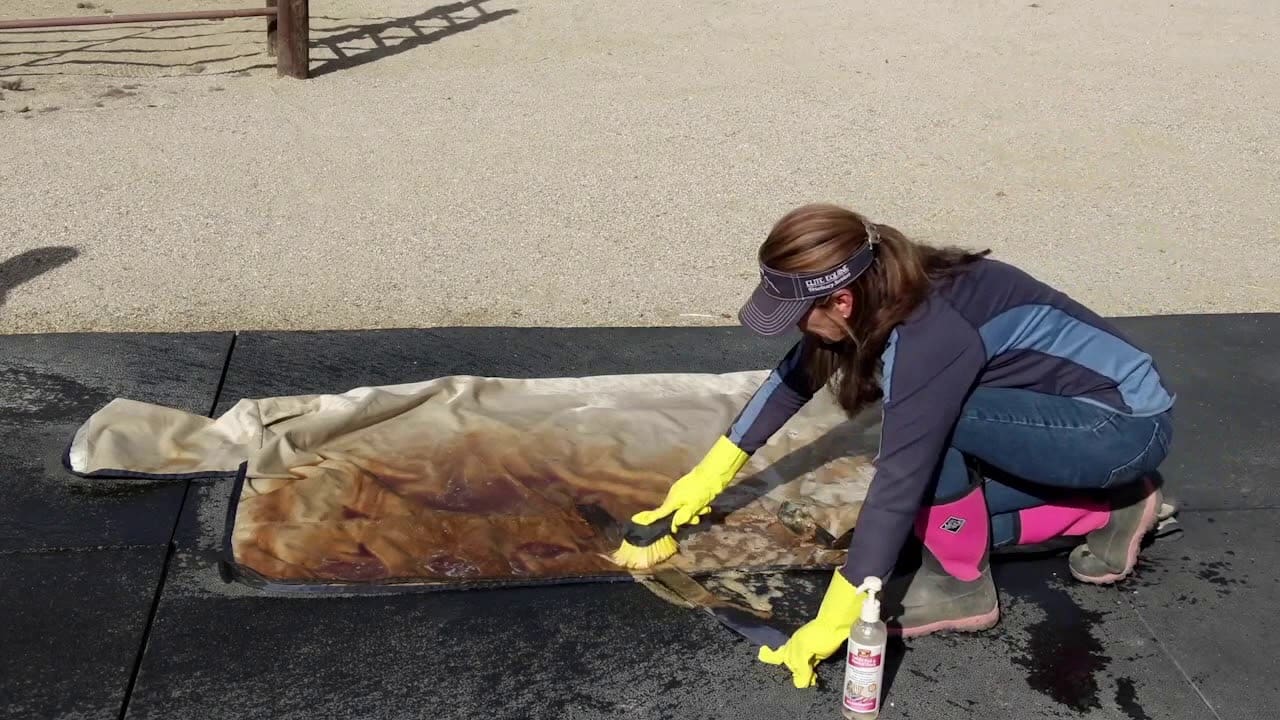 Julie demonstrates how to safely and effectively clean dirty horse blankets.